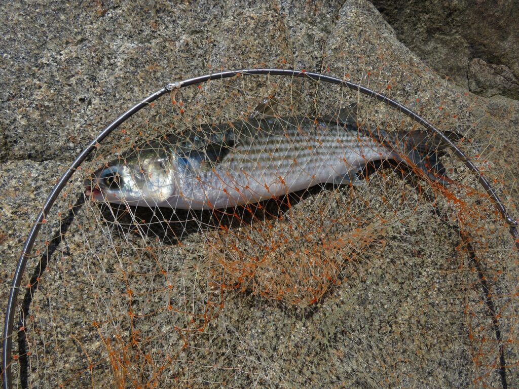 休日に磯釣りに行ってきました。ゆっくり出発したのでいつもの場所は釣り人が複数人いて入れません。帰るか考えましたが、地元の人がよく釣っている場所で釣ることにしました。しかし、磯に着くと水深は浅く、水は透き通り、魚は全くいません。失敗したと思いましたが場所替えの辛い坂道を考えると「撒き餌をいっぱいしたら魚が集まるのではないか」と釣ることにしました。いくら撒き餌をしても魚は寄ってこず「全部撒いて帰ろう」と大量に撒いていると強烈な当たりが。回遊魚が来たと思い、喜んでやり取りをしましたがボラとわかりガックリ、まだ腕は鈍っていませんでした。
